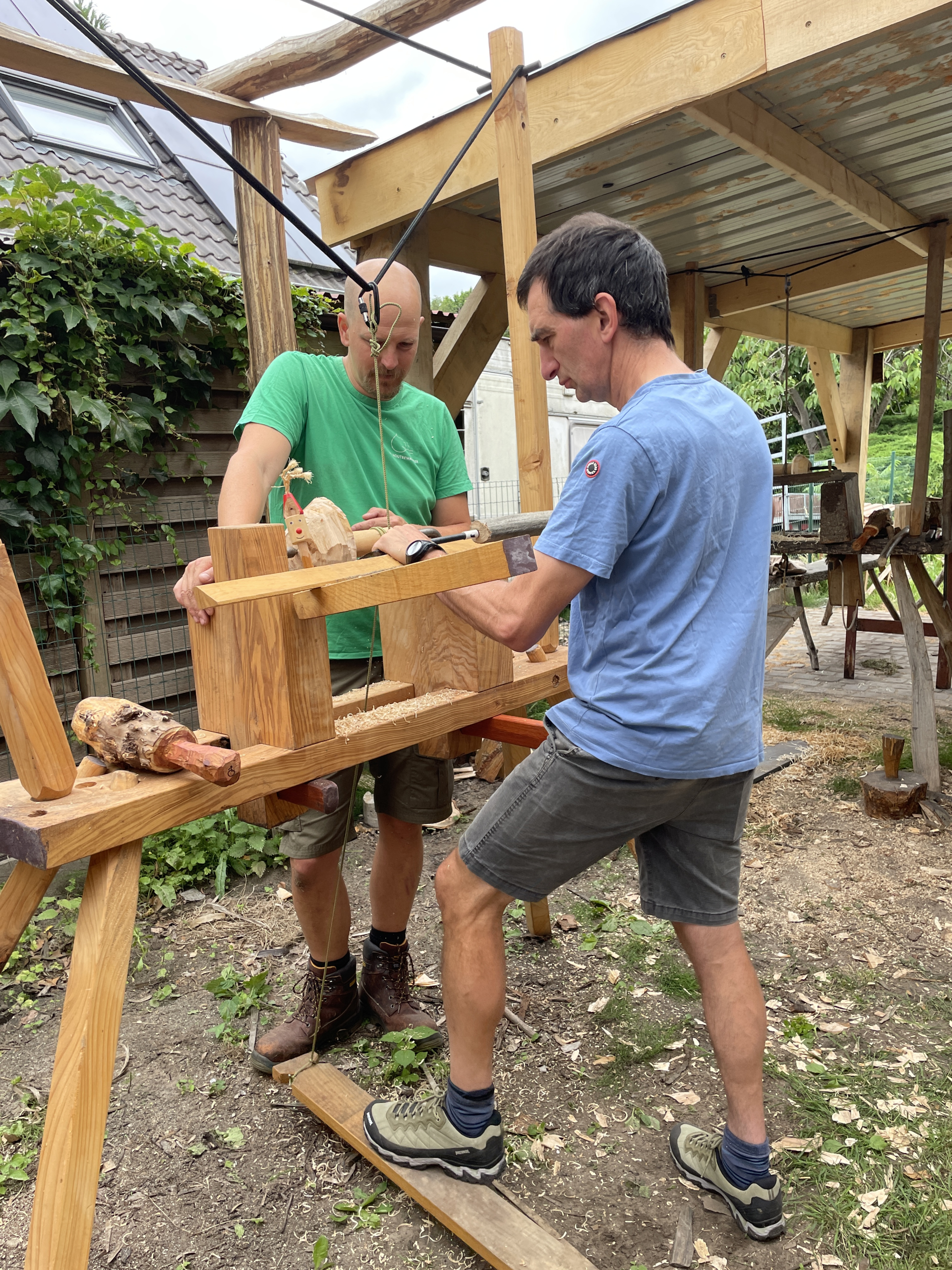 De workshop gaat in principe door bij mij thuis in mijn werkplaats in Wetteren, Rijckerstraat 24 van 9:30 tot 17:00 en is enkel geschikt voor mensen ouder dan 16 die nog steeds trappen kunnen doen (het blijft een fysieke bezigheid). Stuur me een bericht als je graag de workshop op een andere locatie doet tegen een verplaatsingsvergoeding. We staan droog, maar niet altijd uit de wind en in de winter kan het al eens kouder zijn, dus zorg voor aangepaste kledij.