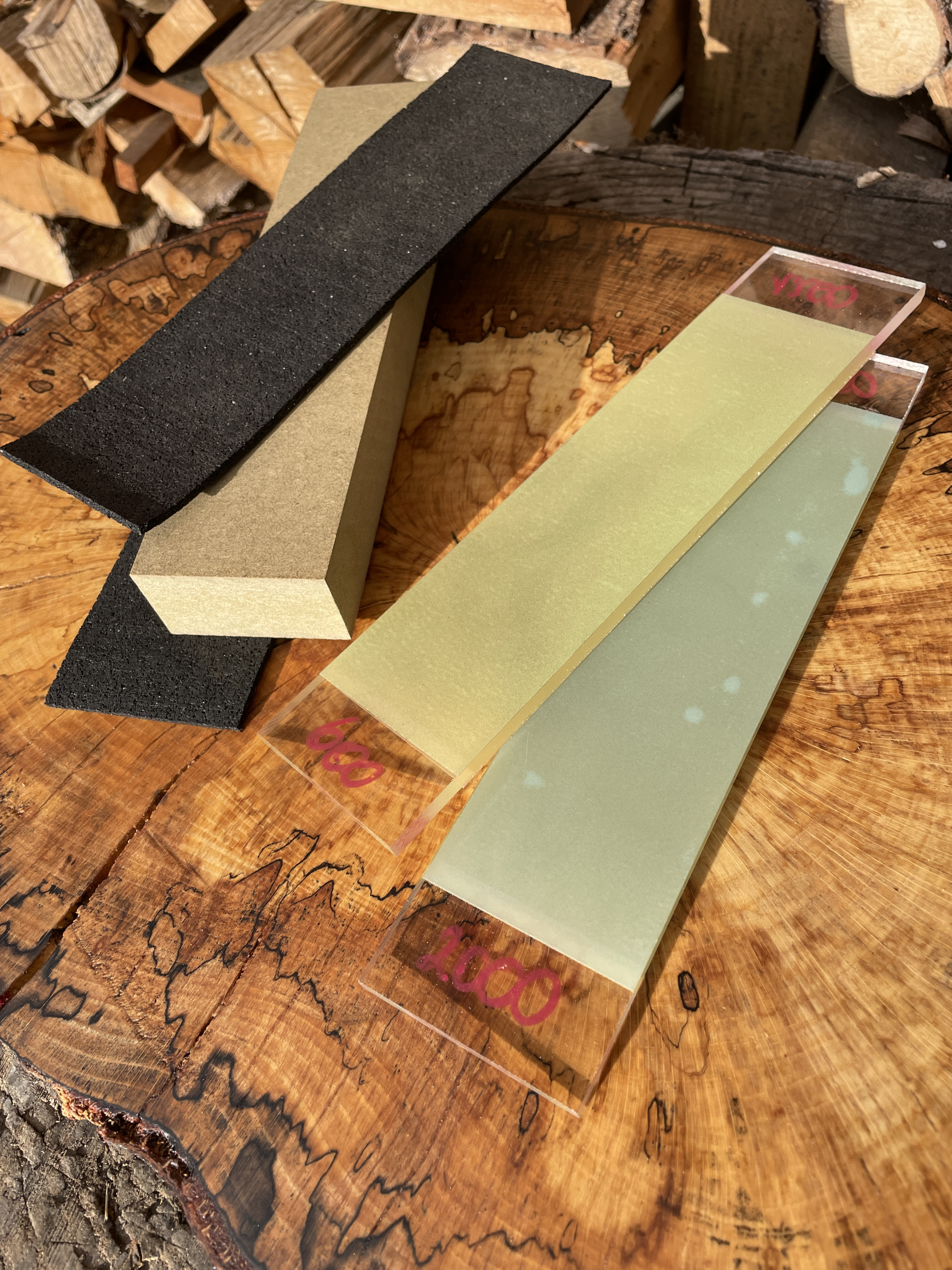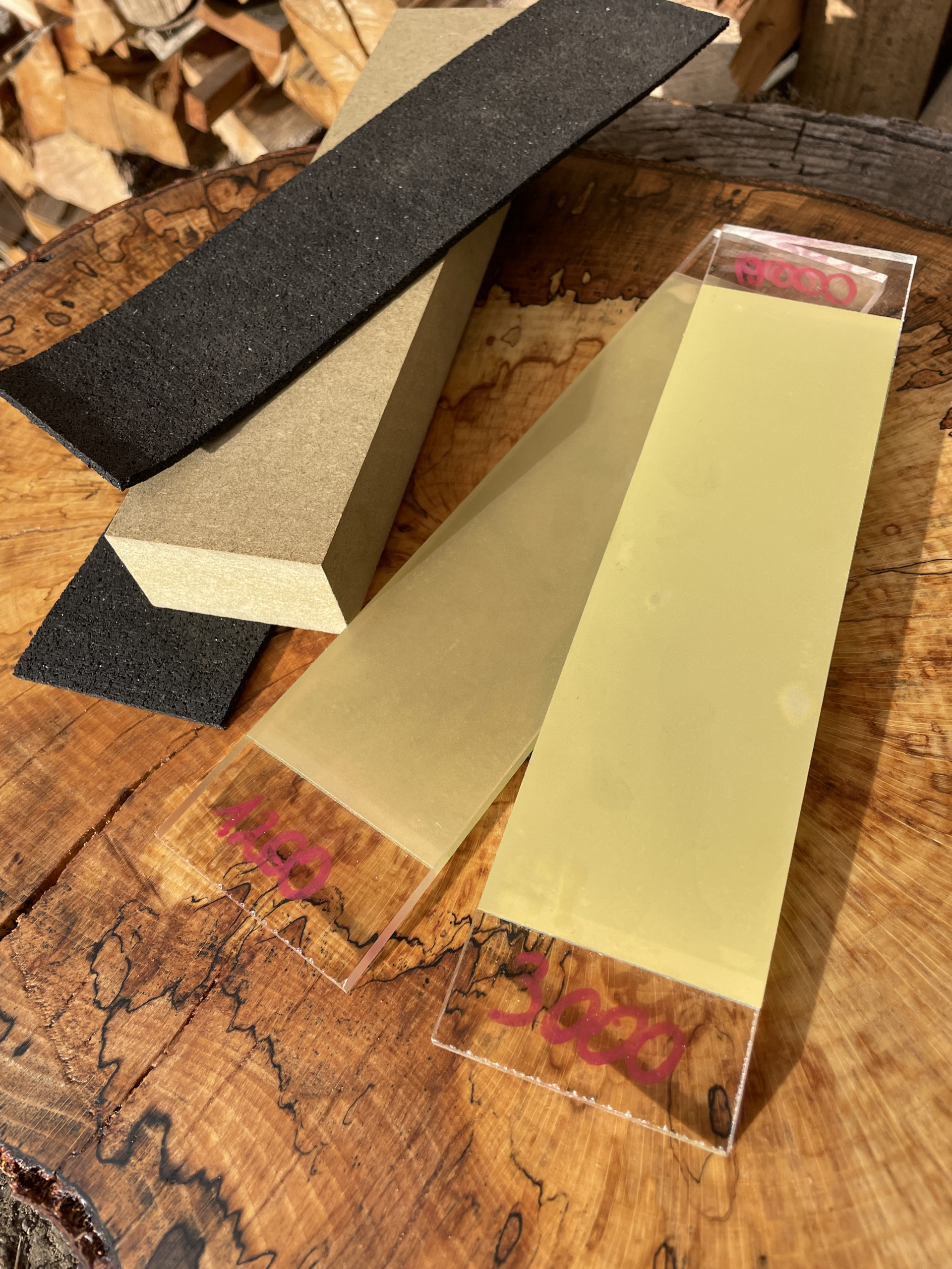 - 2 Acrylaat plankjes met diamantpolijstfilm in korrels 600, 1200, 2000 en 3000 of 7000 reeds gekleefd.