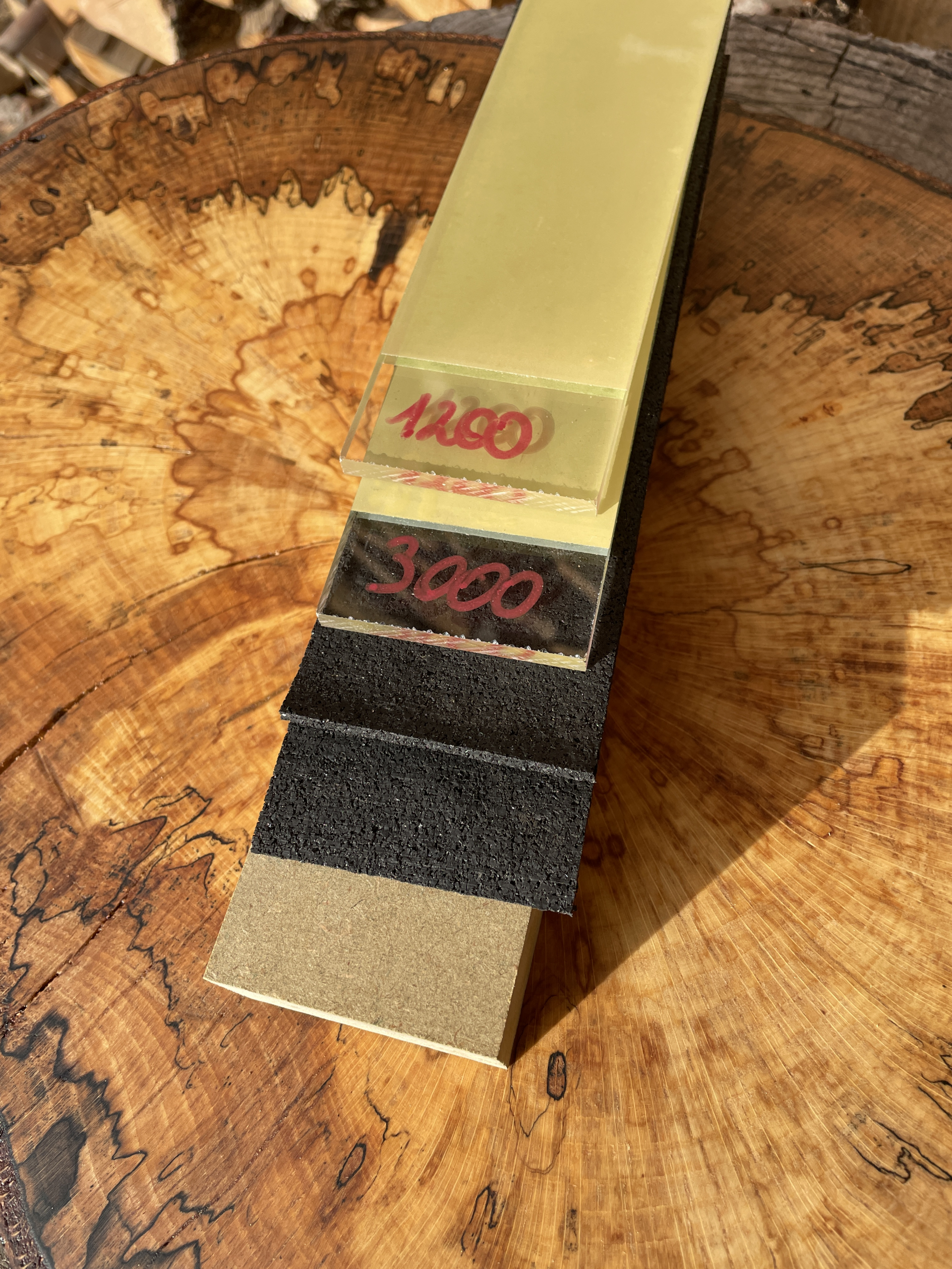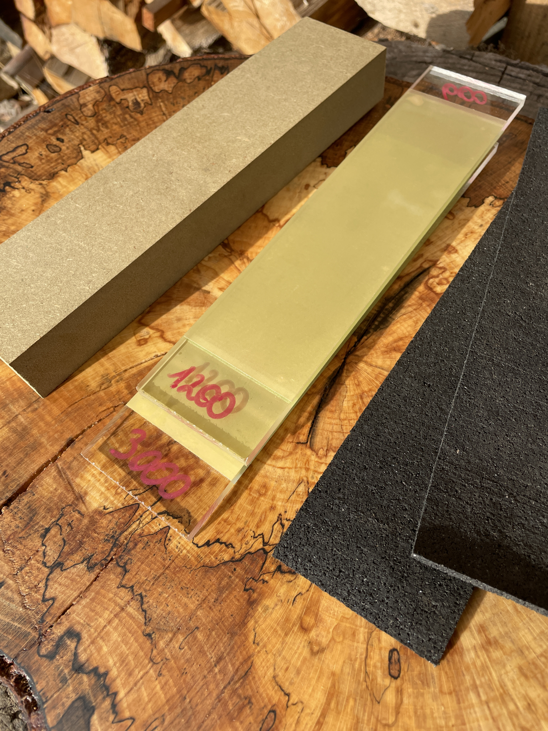 Gebruik korrel 600 bij een zeer bot of bol mes, start anders altijd bij 1200 en ga steeds 1 stapje fijner tot je eindigt bij korrel 3000 of 7000.
